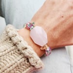 • Bracelet EZZ rose - perles de verre teinté et caillou facetté en verre