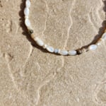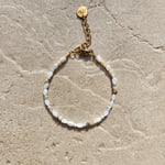 Tout en finesse et delicatesse, le bracelet Lavandou est composé de petites nacres, rondelles en coquillage, pierre de lune et scolécite.