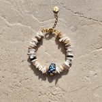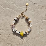 Bracelet en coquillage, quartz rose et ceramique.