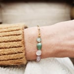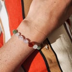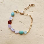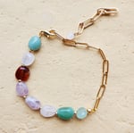 Le bracelet asymétrique MIRA tout de pierres fines (aventurine rouge et verte, améthyste, cristal de roche et quartz rose ✨️) et chaîne plaqué or 3 microns.