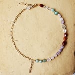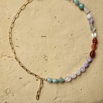 Chaîne asymétrique en acier inoxydable résistant à la vie et pierres fines (aventurine rouge et verte, améthyste, cristal de roche et quartz rose ✨️)
