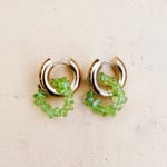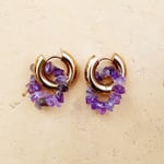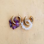 Des créoles épaisses, courbes épurées, pièces fortes et chics qui s'entrelacent avec la pierre semi-précieuse, brute, à l'énergie puissante et aux couleurs vibrantes.